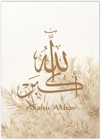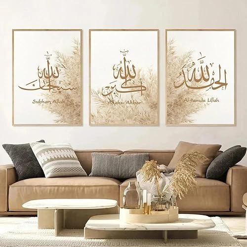 Affiche D'Art, 3 Pièces - Peinture sur Toile Abstraite Calligraphie Islamique Tableau Beige Roseau Affiche D'Art Mural Bohème Images Salon Cuisine Chambre à Coucher Décoration-60 * 90Cm (Sans Cadre)