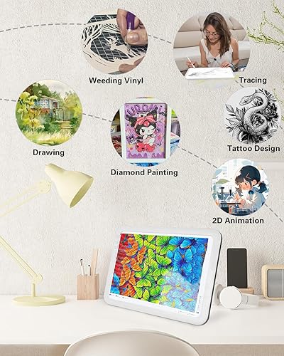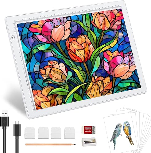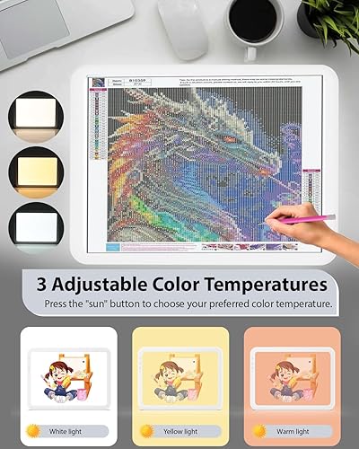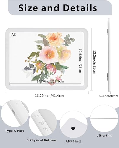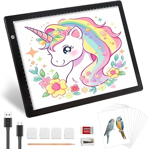 KEIWRLIGHT Tableau lumineux A4 pour bloc de traçage – Boîte lumineuse fine branchée à luminosité réglable – Boîte lumineuse A4 pour peinture diamant, croquis, tatouage, accessoires pour enfants et