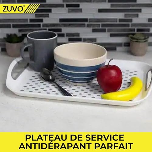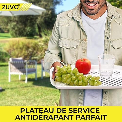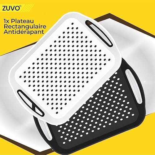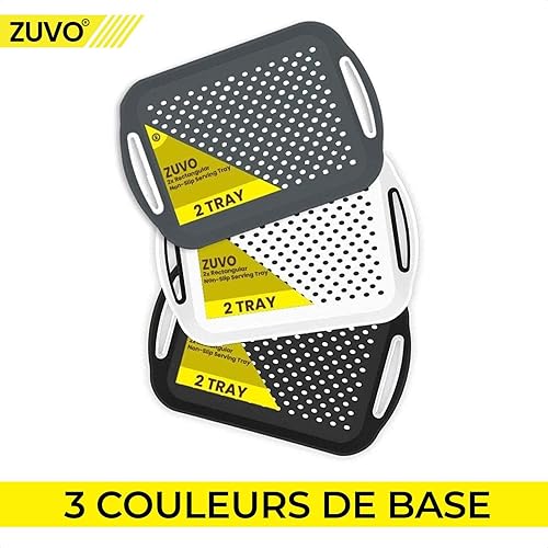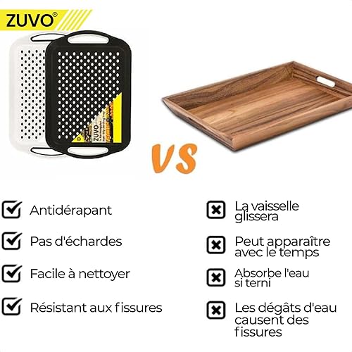 Zuvo Lot de 2 Plateaux de Service Antidérapants avec Poignées | Léger, Durable & Facile à Nettoyer | Pour Tous Types d'Aliments & Boissons | Caoutchouc à Haute Adhérence | Noir