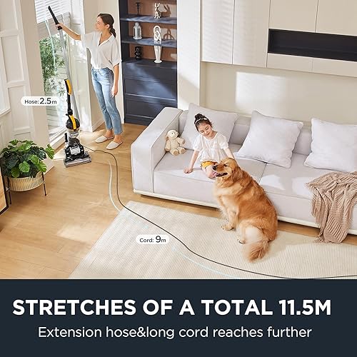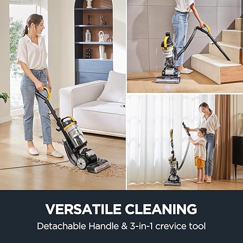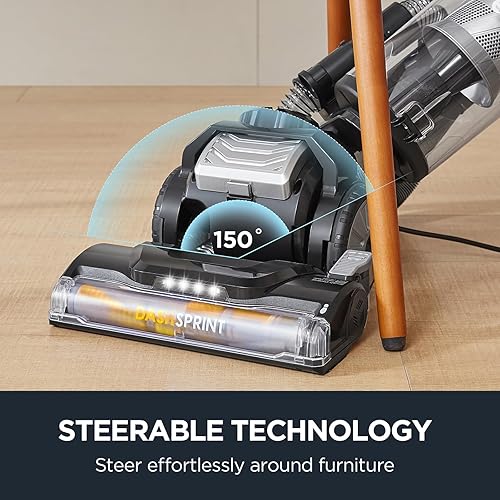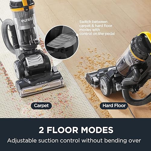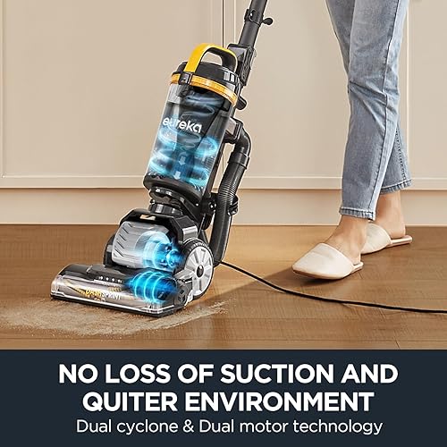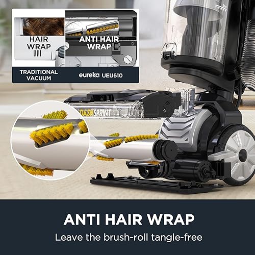 EUREKA Aspirateur vertical UEU610 avec ventouse de 2,2 L, technologie anti-enchevêtrement et double cyclone, direction pivotante à 150°, lumières LED, suceur plat 3 en 1