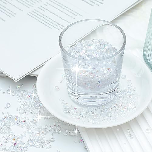 FINEASY 5130pcs Cristaux Acrylique Diamants, Décorations de Table de Mariage 3/6/10 mm, Diamants en Acrylique Transparents Clair Pierres de Strass pour Décorations de Perles de Vase