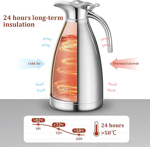 Carafe Thermos BIG bouteille thermos Flacons sous vide Carafe à café thermique Carafe isolée en acier inoxydable de 2 l Garde l'eau chaude pendant 24 heures Pichet à eau isolé à l'épreuve