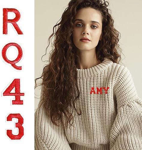Lot de 72 patchs brodés en forme de lettres de l'alphabet rouges - Pour réparation de jeans