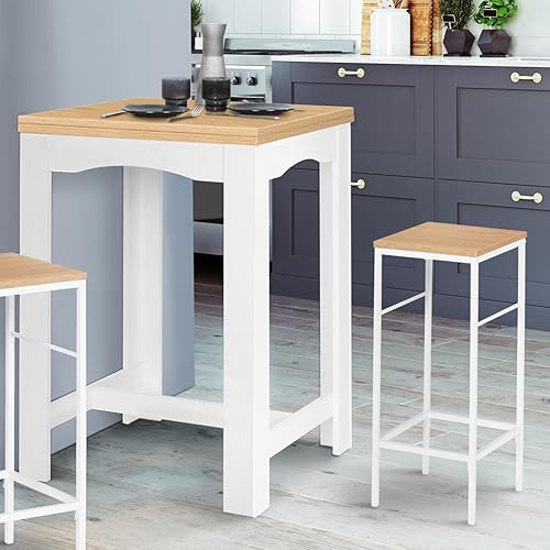IDMarket - Table Haute de Bar Extensible Dona 2 à 4 Personnes Blanche Plateau façon hêtre 65-130 cm