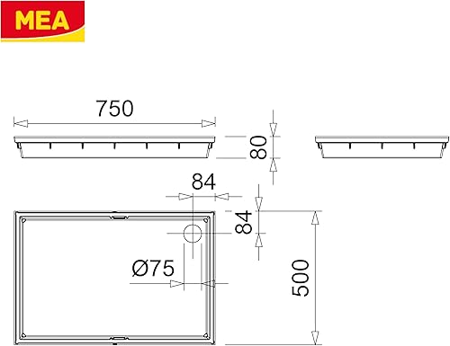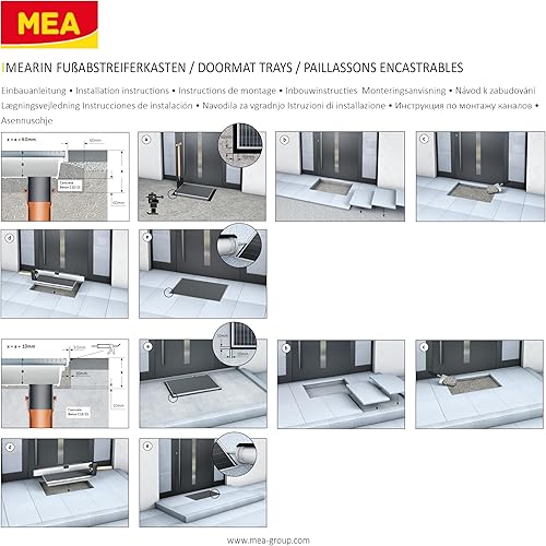 MEA Paillasson encastrable en SMC, Dimensions 75x50x8 cm, avec Grille caillebotis en Acier galvanisé Maille 30/10