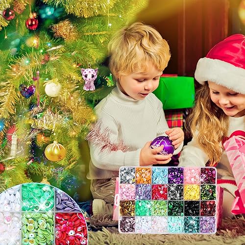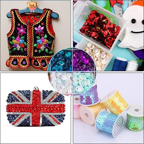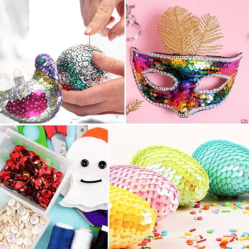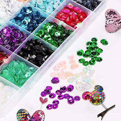 Sequins à Coudre,24 Couleurs Jeu de Paillettes Colorées Créatifs Paillettes,Paillettes Couture avec Boîte Pour Couture Paillettes Pour Fabrication d'Artisanat Décoration Vêtement Mariage Bijoux