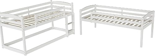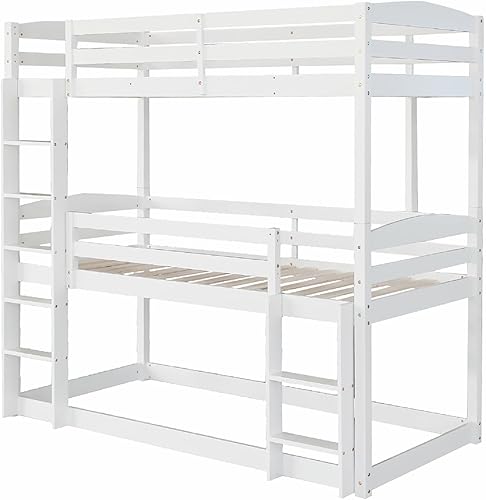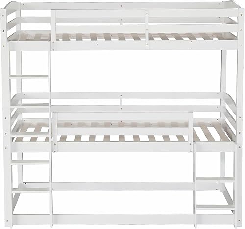 PUGSDRLY Lit Superposé Enfant 3 Places,Lit 3 Places avec échelle,Single-Size-lit superposé en Bois à Trois Places pour Enfants,90x200cm,sans Matelas (Blanc)