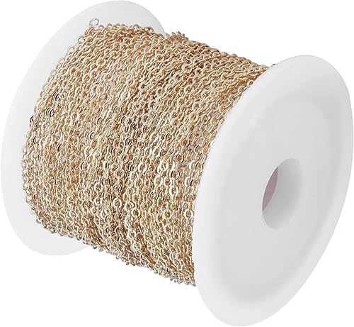 Accessoires de Bijoux à Bricoler Soi-même 10 Mètres Croix O Plat Chaîne Bobine En Vrac pour Bracelet Collier ExtenderKC Doré 2.2x1.8x0.3mm En Acier Inoxydable Rouleau Chaîne En Aluminium Lin Exquis