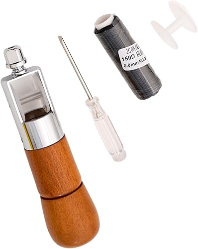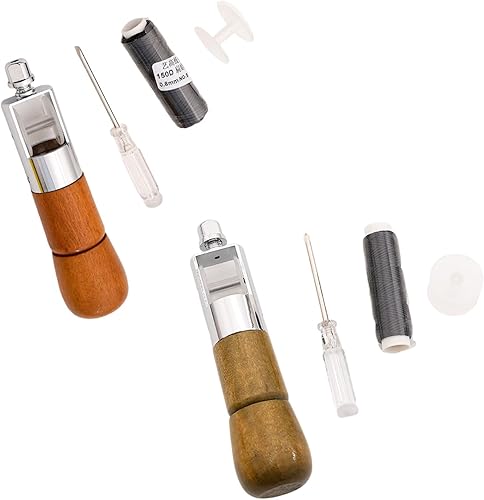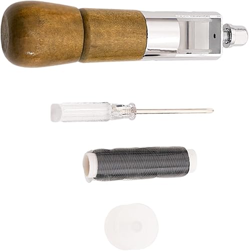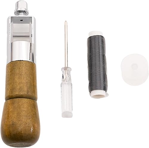 LIbgiubhy Poinçons de couture avec poignée en bois - Outil de réparation rapide pour cuir, chaussures, sacs, ceintures, tissus lourds et toile