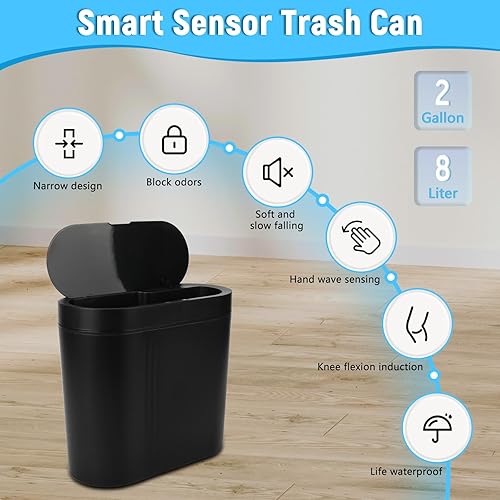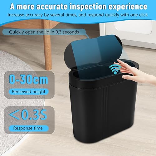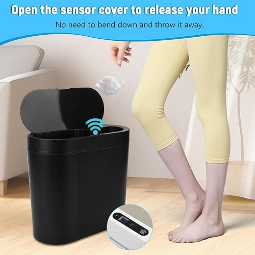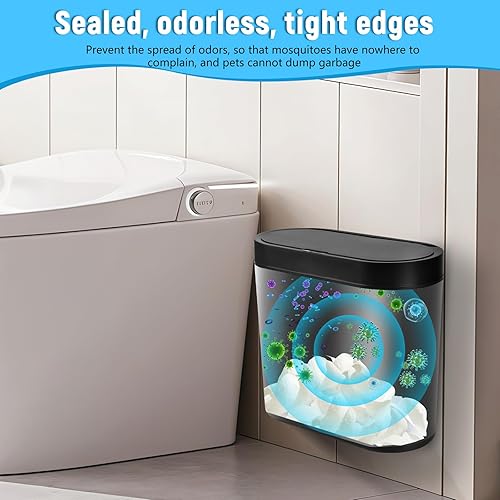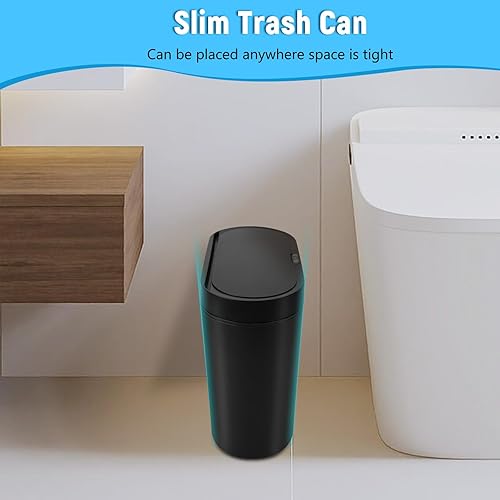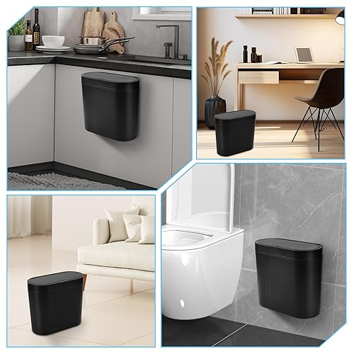 Catolsss Poubelle avec capteur, noire, 16 l, à suspendre, avec couvercle, crochet, plan de travail ou sous l'évier, porte d'armoire ou mur, pour salle de bain, chambre à coucher, poubelle à compost