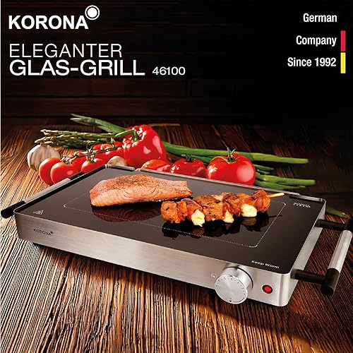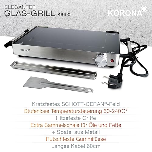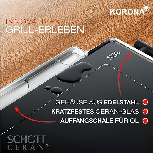 Korona 46100 Barbecue électrique de table | Surface de cuisson en vitrocéramique SCHOTT allemande | 2 en 1 et plaque chauffante | Boîtier en acier inoxydable | 50-240 °C réglable | 800 W