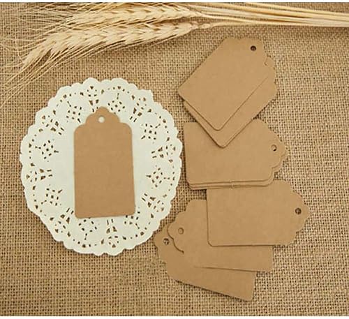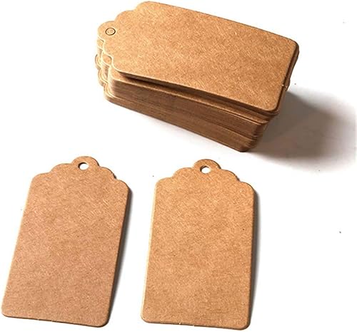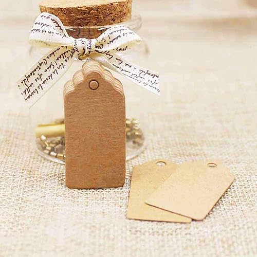 Keweni Lot de 100 étiquettes en papier kraft - étiquettes à suspendre avec 20 mètres de ficelle de jute naturelle pour cadeaux, mariage, Saint-Valentin - 3 x 5 cm