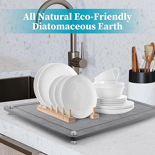 QLoztyse Tapis Egouttoir Vaisselle - Tapis Vaisselle Absorbant de Cuisine en Pierre de Diatomite, Tapis de Séchage Rapide 30x40 CM, Plateau Égouttoir Antidérapant pour Cuisine