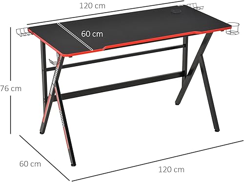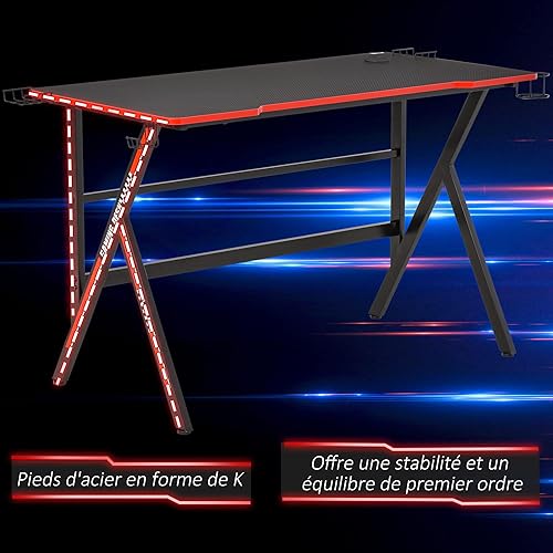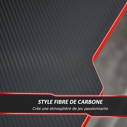 HOMCOM Bureau Gaming Racing Bureau Gamer Bureau Informatique Bracket Supports Casque Enceintes Porte-gobelet métal Plateau MDF Texture Carbone Rouge Noir