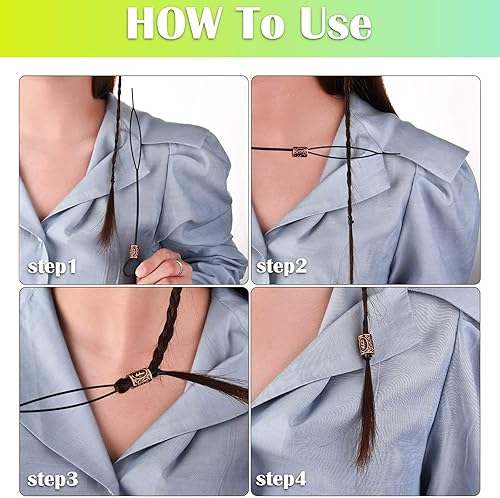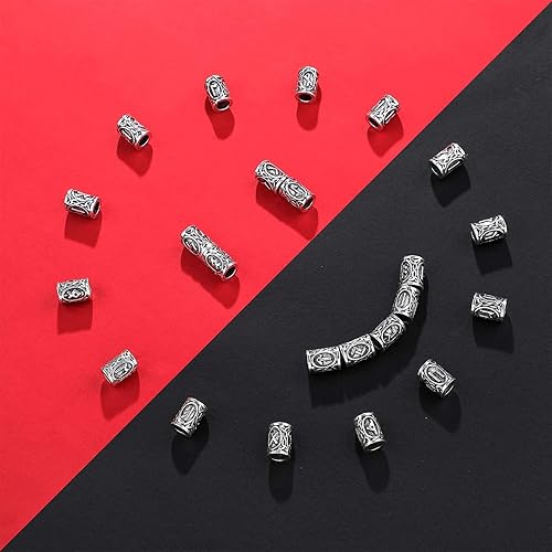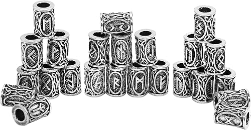 24 Pièces Perles de Cheveux de Barbe, Viking Barbe Perle, Alliage Dreadlock Perles, Perles de Rune Viking Nordiques Kit de Perles pour Tressage de Cheveux Bracelet Pendentif Collier Bricolage