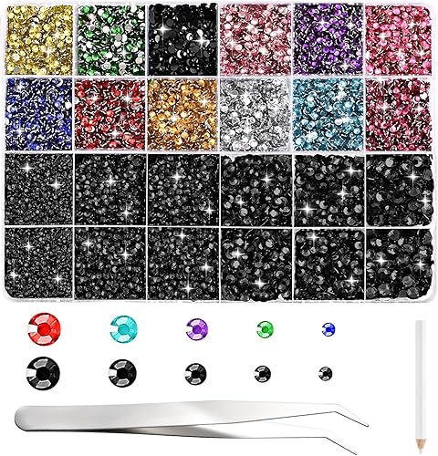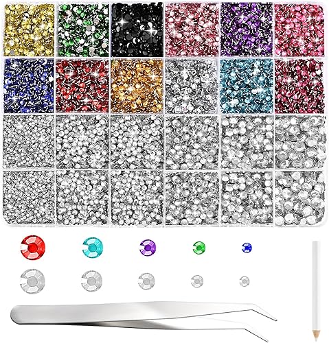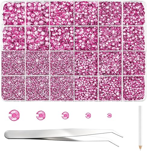 NACHLYNN Lot de 35 700 strass en résine rose vif ronds à dos plat avec pince à épiler stylo 2 à 6 mm pour ongles, loisirs créatifs, gobelets, tasses et vêtements