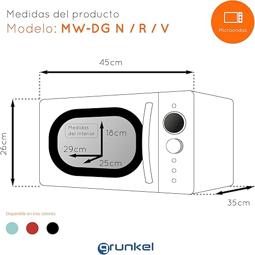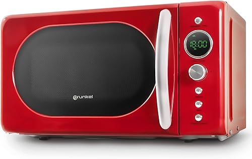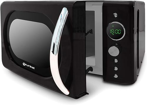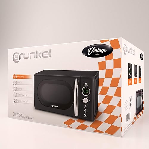 Grunkel - Micro-ondes de 20 l de capacité avec design vintage et 5 niveaux de puissance. Fonction de dégivrage et minuterie - 700 W - Noir (Digital)