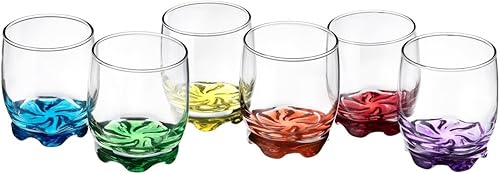 Sendez Lot de 6 verres à eau, à jus de fruits, à fond coloré, 250 ml, passent au lave-vaisselle