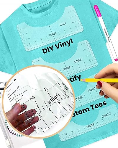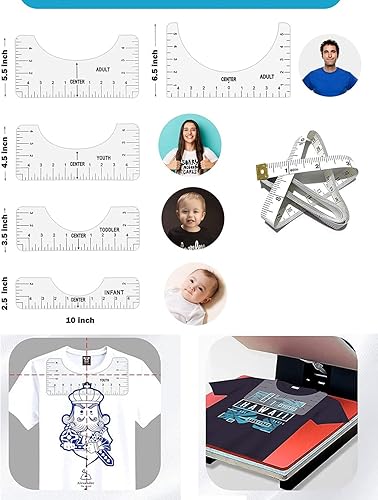 KGDUYC Règles de couture - 5pcs Guide de Règle de T-Shirt,Outils d'Alignement de T-Shirt Règles d'Alignement de T-shirt Règles de Centrage avec 1Ruban à Mesurer Souple pour adultes et jeunes enfants