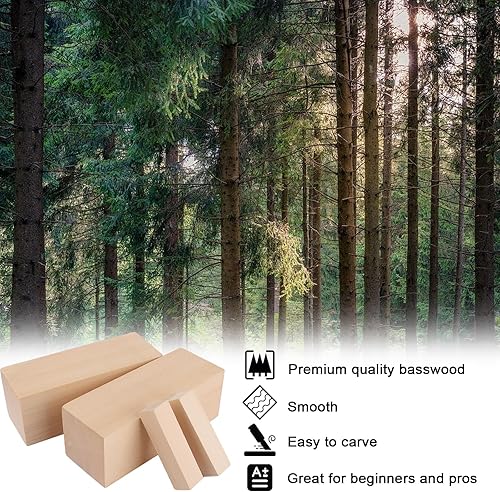 YAYODS Lot de 8 blocs de bois équarri à sculpter - Bois de tilleul à sculpter - 2 grands 20 x 7 x 7 cm - 6 petits blocs en bois équarri - 10 x 2,5 x 2,5 cm - Bois équarri de tilleul pour sculpter