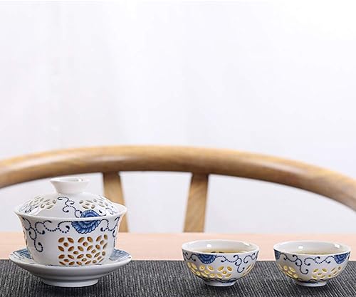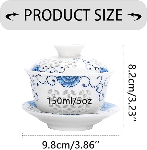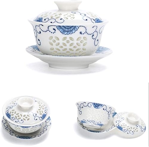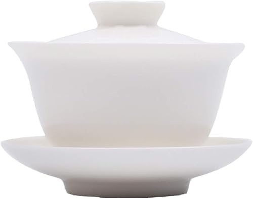 Mozentea Service à Thé Gaiwan en Céramique - Tasse Gai Wan pour Cérémonie Chinoise Gong Fu - Infusion de Thé Oolong, Noir et Vert (Blanc)