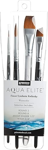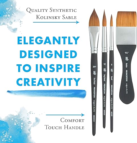 PRINCETON Aqua Elite - Set Professionnel 4 pinceaux synthétiques pour l'aquarelle