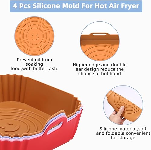 22CM Air Fryer Accessoires, 4 Pièces Moule Silicone Air Fryer, Réutilisable Friteuse Air Chaud Silicone Papier