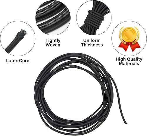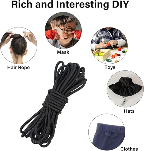 Cordon élastique noir de 4 mm de long - 5 m - Cordon élastique rond extensible multifonction pour sac à dos, tente, poteaux, bricolage, projets d'artisanat, camping