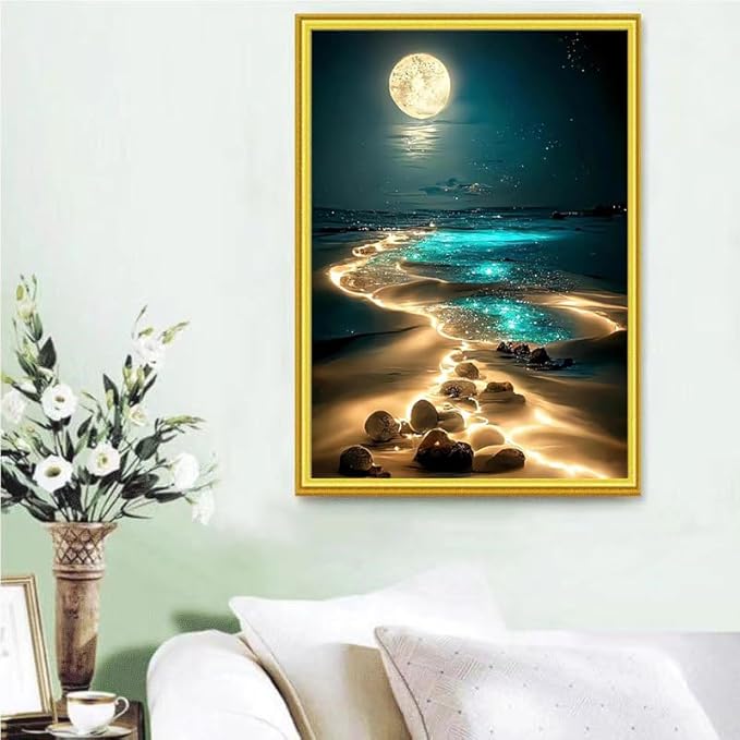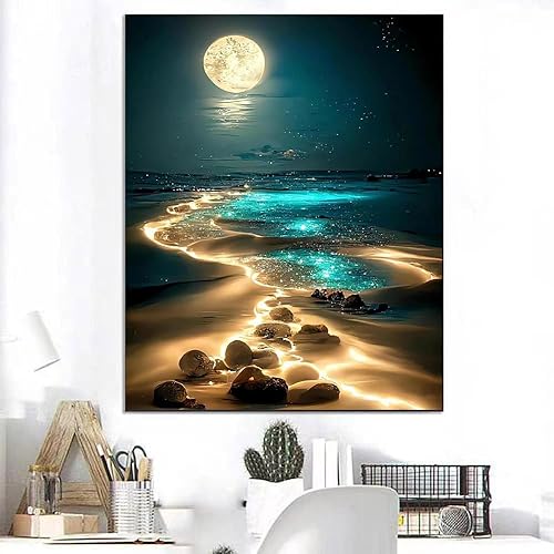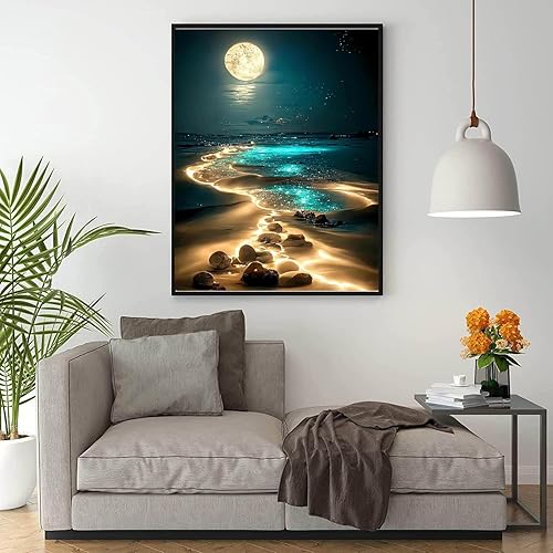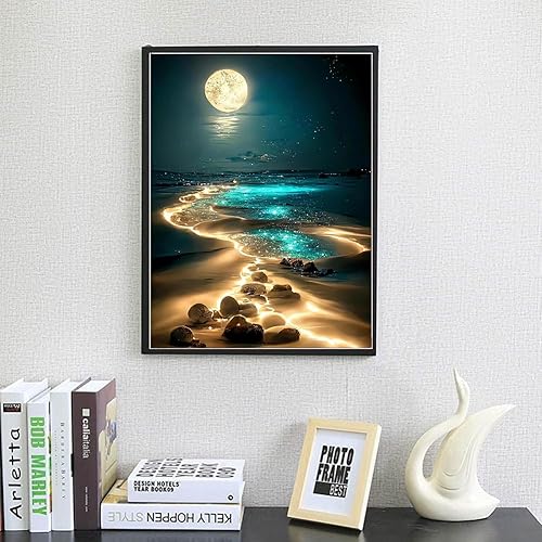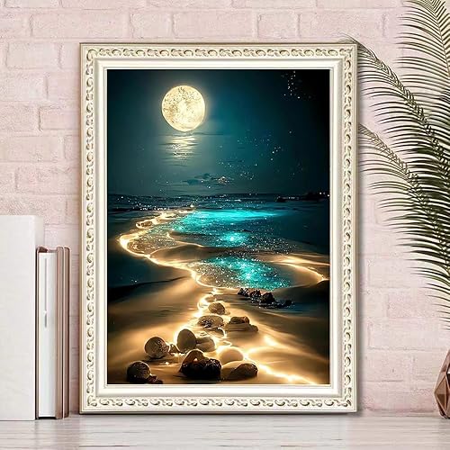 Kit de peinture diamant 5D - Kit complet à faire soi-même - Cristal - Strass - Broderie diamant - Pour enfants et adultes - Décoration murale - 30 x 40 cm - Motif lune bleue