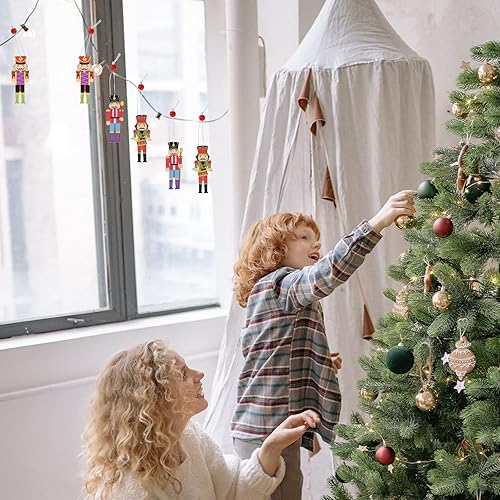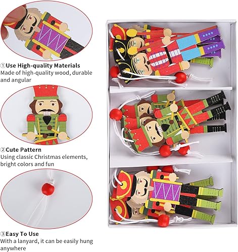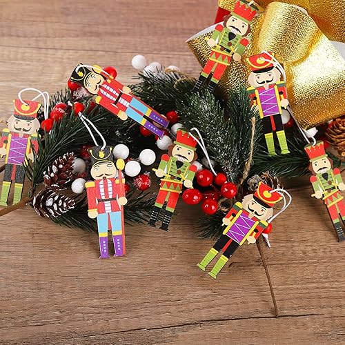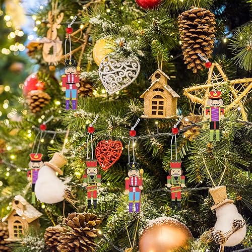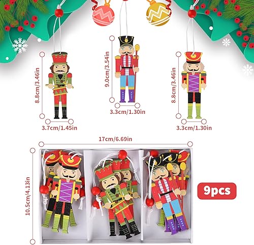 Décoration de Noël Casse-Noisette,9Pcs Casse Noisette en Bois Ornements Suspendus Mini Soldat Casse Noisette Décoration d'arbre Faite à la Main pour Sapin de Noël,Cadeaux de fête