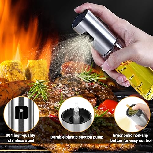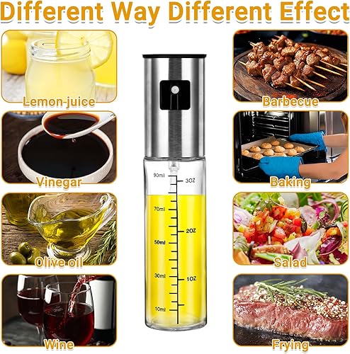 Set de 5 Pulvérisateurs d'Huile - 2 bouteilles pulvérisatrices d'huile 90ml - Spray d'Huile - Matériau en Verre - Consommation Précise d'Huile - Idéal pour la Cuisine, Barbecue, Salades (Argent)