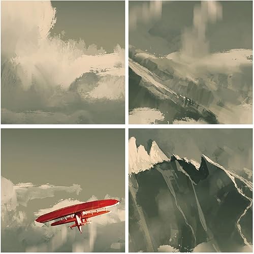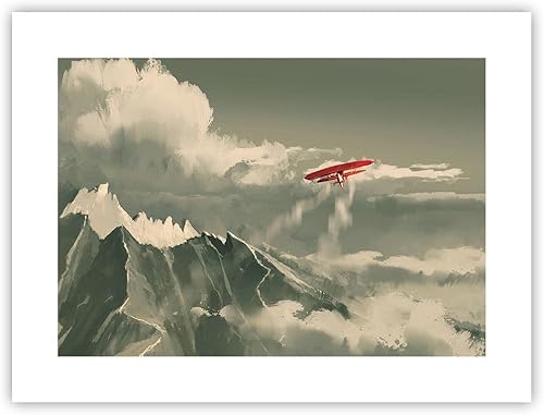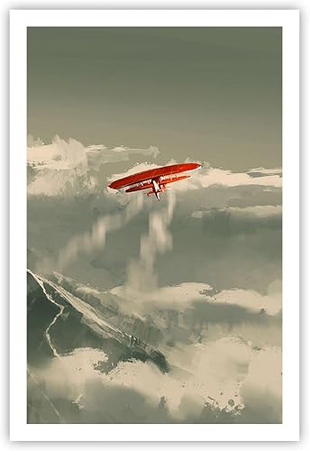 ARTTOR Deco Affiches Murales 70x50cm Affiche Decoration Murale Rouge Avion Montagnes Cuisine Wall Art Design Moderne Poster sans Cadre Tableau Decoration Salon Chambre Decor P2XAA70x50-4854