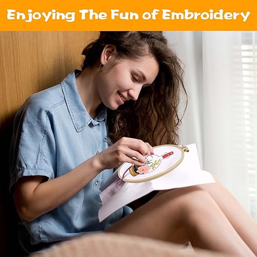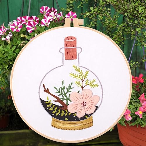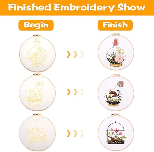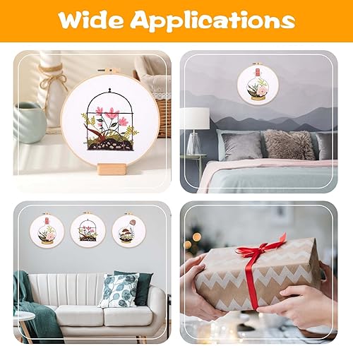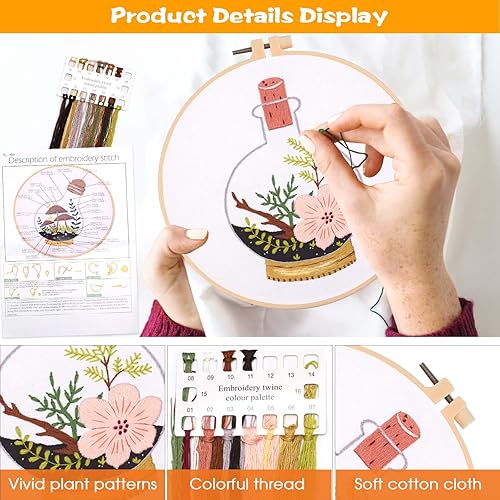 Kit de Démarrage de Broderie, 3 Pcs Kit de Broderie au Point de Croix avec Modèle et Instructions, Kit de Broderie Débutant pour Adultes pour la Couture d'Artisanat d'Art DIY (Fleurs et Plantes)