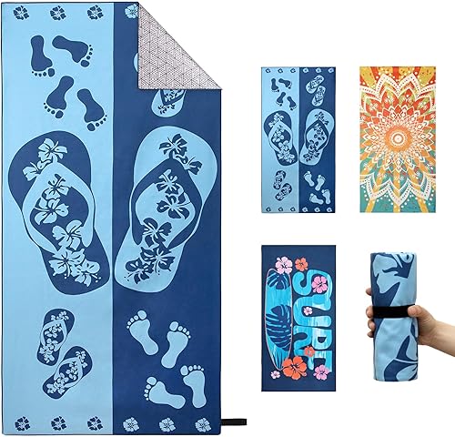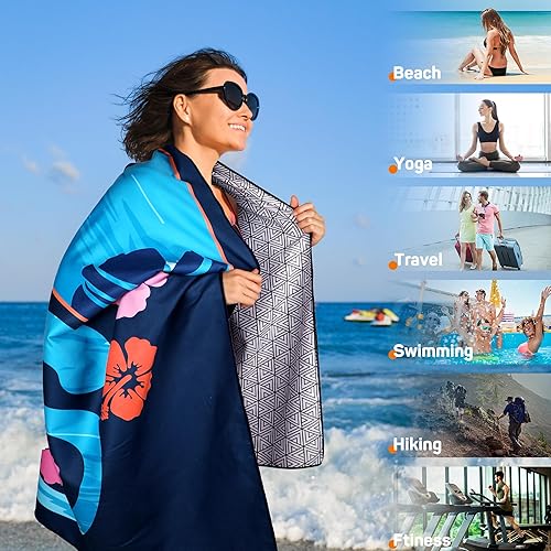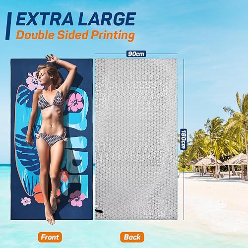 Yeahshion Serviette de Plage à Séchage Rapide 180x90 cm, Grande Serviette de Sport en Microfibre Anti Sable, Serviette de Plage Portable pour Sport, Voyage, Yoga, Natation, Surf Bleu