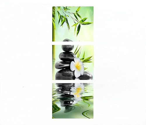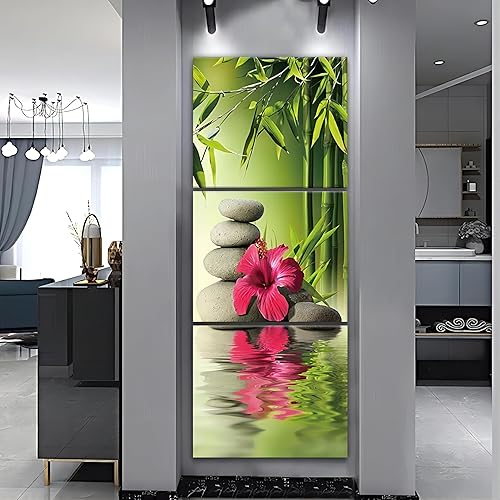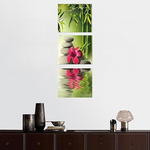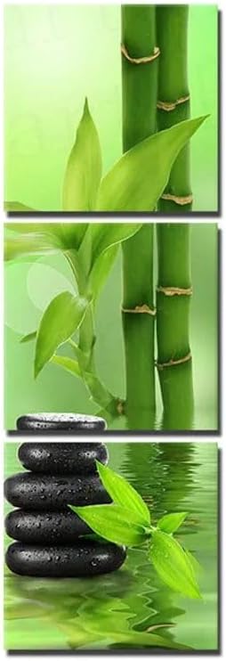 YUPPOG Lot de 3 toiles murales en bambou vert zen avec plantes tropicales affiche de spa peintures imprimées pour salle de bain salle de yoga bureau salle de bain décoration-30x30cmx3P Sans cadre