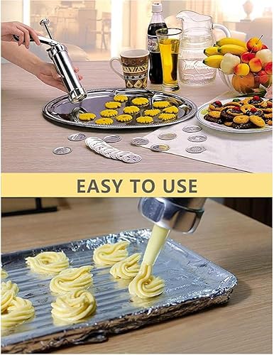 Presse a bBiscuit,Cookie Press,Machine à Biscuits,avec 8 Disques Biscuits et 8 Douilles Chaque permet d'obtenir un produit fini,jusqu'à 20 pièces.pour La Fabrication de Biscuits Gâteaux,Presse Biscuit