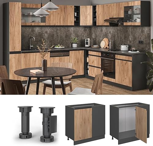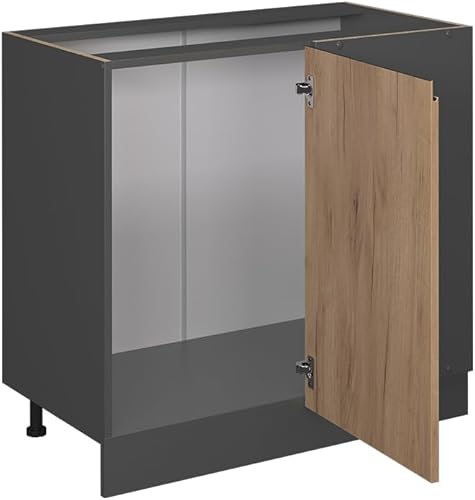 Vicco Meuble d'angle R-Line, Chêne de Force doré/Anthracite, 86 cm J-Shape, sans Plan de Travail