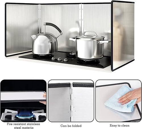 Protection Anti-éClaboussures Pliable,Protecteur D'écran Splatter En Acier Inoxydable, Protection Pour La Cuisine Et Plaque De Cuisson,Pour Cuisine, Cuisine Et Friture,4 Côtés ( Color : Silver , Size