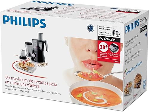 Philips HR7762/90 Robot Viva collection Bol + Blender + Hachoir + Disque à Frites Moteur 750watts Noir