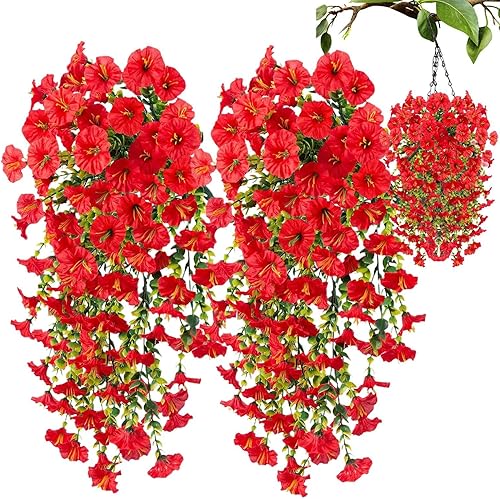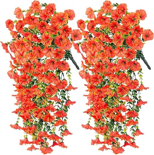 Shitafe 2PCS Fleurs Artificielle Suspendue, 75CM Fleurs Artificielle Extérieur, Pétunia Artificielles, Plant-ES Artificielles Simulation, pour Balcon Jardin Patio Mariage Partys Décoration