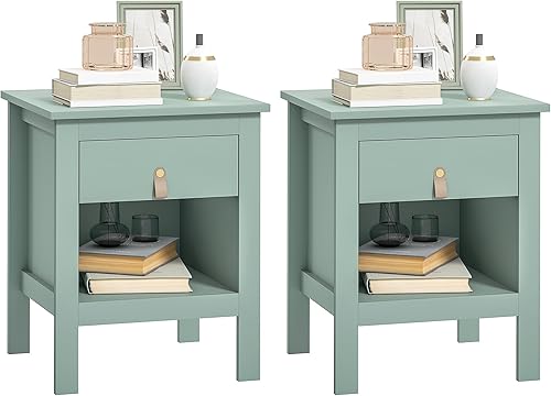 HOMCOM Lot de 2 Tables de Chevet Table de Nuit avec tiroir et Compartiment Ouvert, Style Moderne pour Chambre à Coucher, Salon, 45 x 40 x 55 cm, Vert