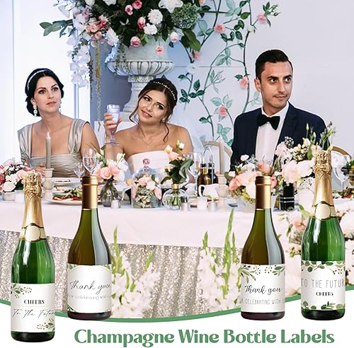 URROMA Lot de 60 mini étiquettes de bouteille de champagne vertes - Motif floral - Pour fête de mariage, anniversaire, fête - 4 styles