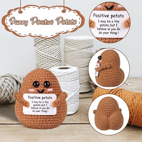 Pomme de Terre Positive Drôle, 9cm Mini Poupée de Pomme de Terre avec Gros Cul Mignon Jouet de Pomme de Terre Tricoté avec Carte Positive Bouche pour la Maison Bureau Anniversaire Décoration