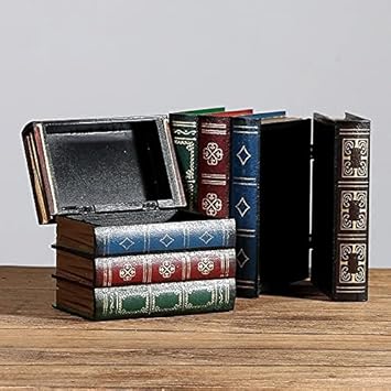 YANGMEI Boîte de rangement décorative vintage en forme de livre, boîte d'organisation classique en bois pour la maison, le bureau (C-L, 20,3 x 14 x 15,9 cm)