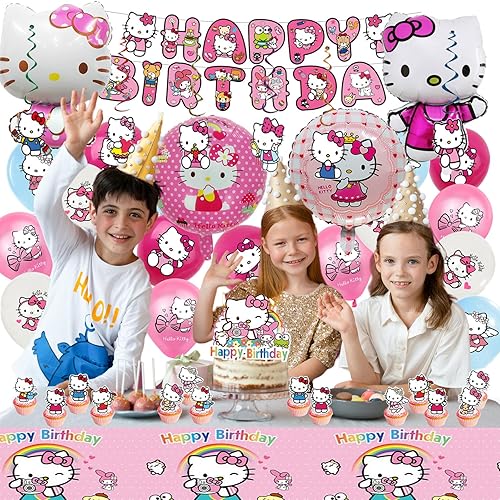 Decoration anniversaire fille,55 pièces décorations d'anniversaire pour enfants, Comprend bannière, Nappe, Décoration de gâteau, Ballons latex, Ballons aluminium, Tatouages pour enfants