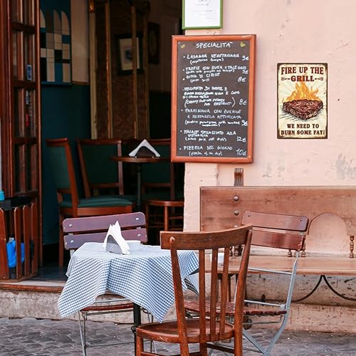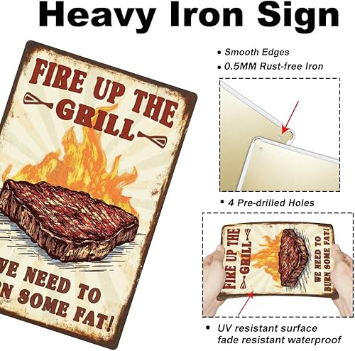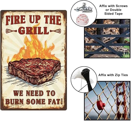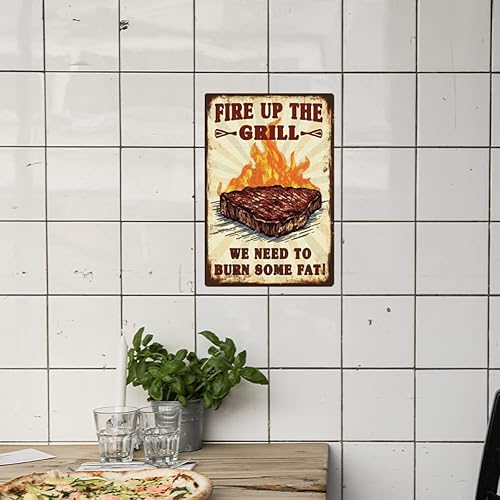 Hobbspring 1 plaque en tôle vintage en métal - 20 x 30 cm - Plaque humoristique pour barbecue Fire Up The Grill We Need To Burn Some Fat Poster pour cuisine, salle à manger, restaurant, bar,