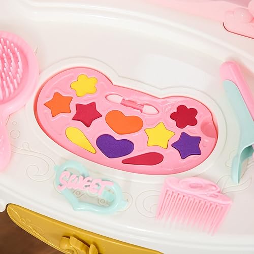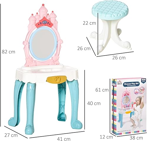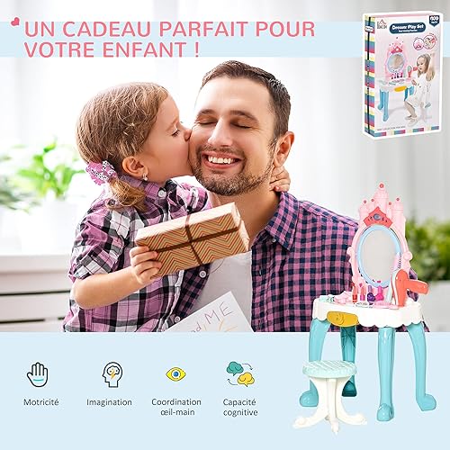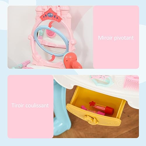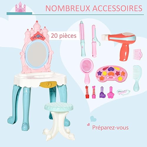HOMCOM Coiffeuse Enfant avec Tabouret Design château de Princesse - Effets Lumineux et sonores - 12 Accessoires - ABS PP Multicolore