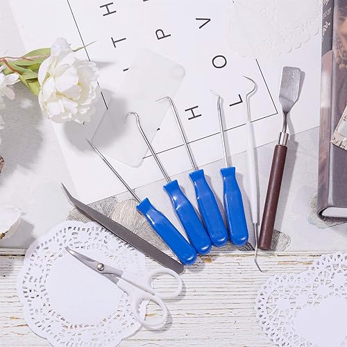 BENECREAT 9PCS Ensembles D'outils de Désherbage en Vinyle, Outils de Ponçage en Acier Inoxydable avec Lettrage, Ciseaux Brucelles Scraper Spatule pour Silhouettes, HTV, Camées et Lettrage