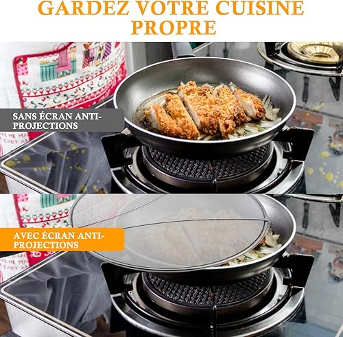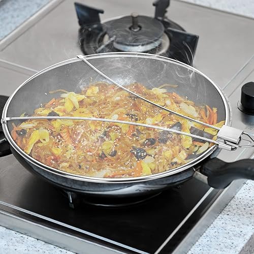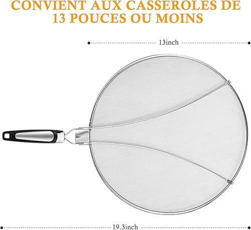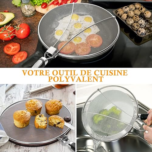 Protecteur d'écran Splatter en Acier Inoxydable Pli en Silicone Acier Mailles Fines,Évite Les éclaboussures,Entretien Pratique Cuisine Friteuse Couvercle Anti-Huile 33 cm de diamètre