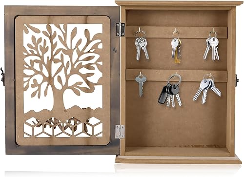 PCXWTLN Boîte à Clés en Bois, Boîte à Clés Rétro avec 6 Crochets à Clés, Organisateur Mural Blanc, Boîte à Clés, Tableau à Clés pour Couloir, Bureau (Évidé)